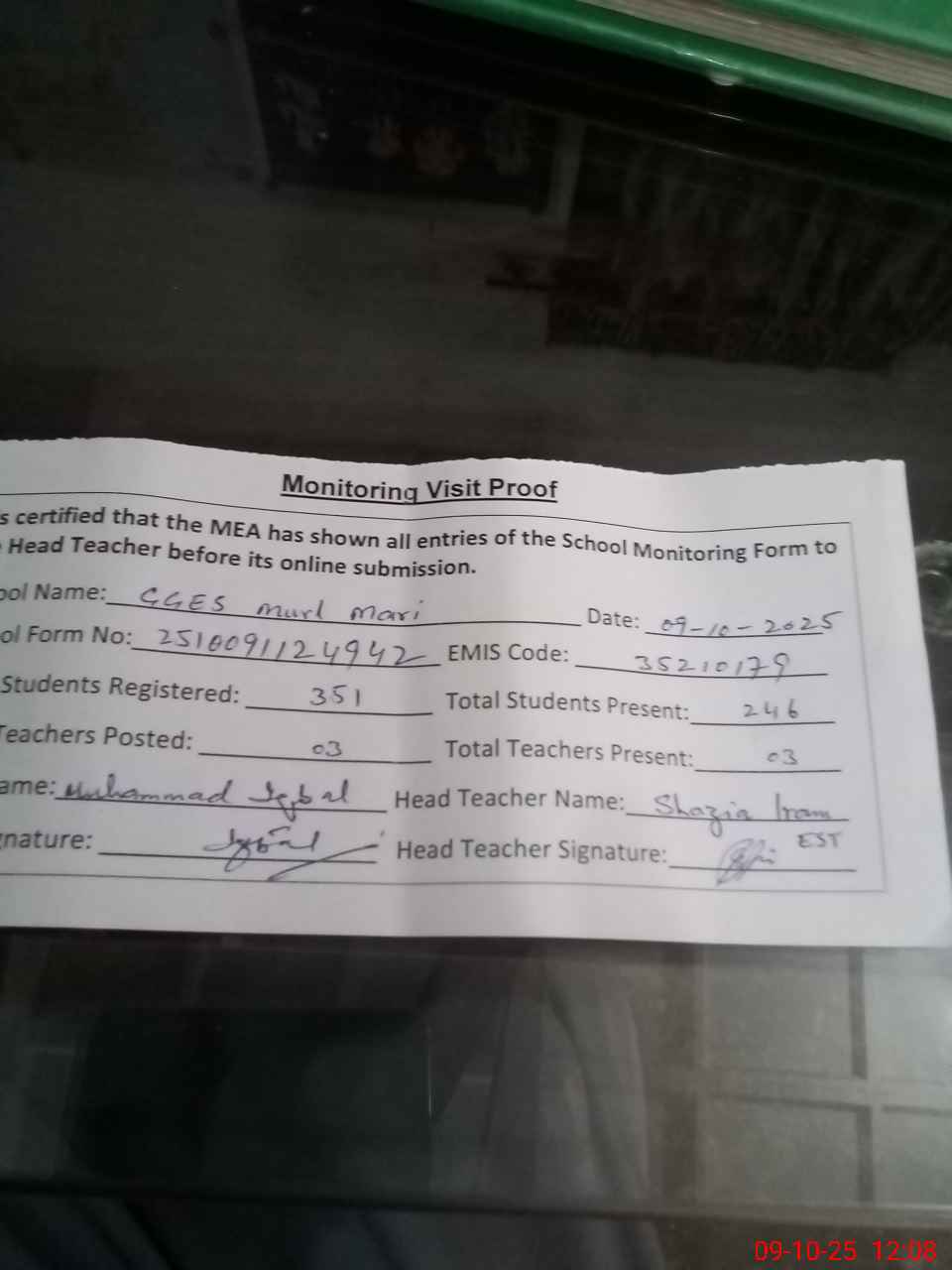 | EMIS Code: 35210179 | Name of School: GGES MURL MARI TEHSIL SHALIMAR | |||