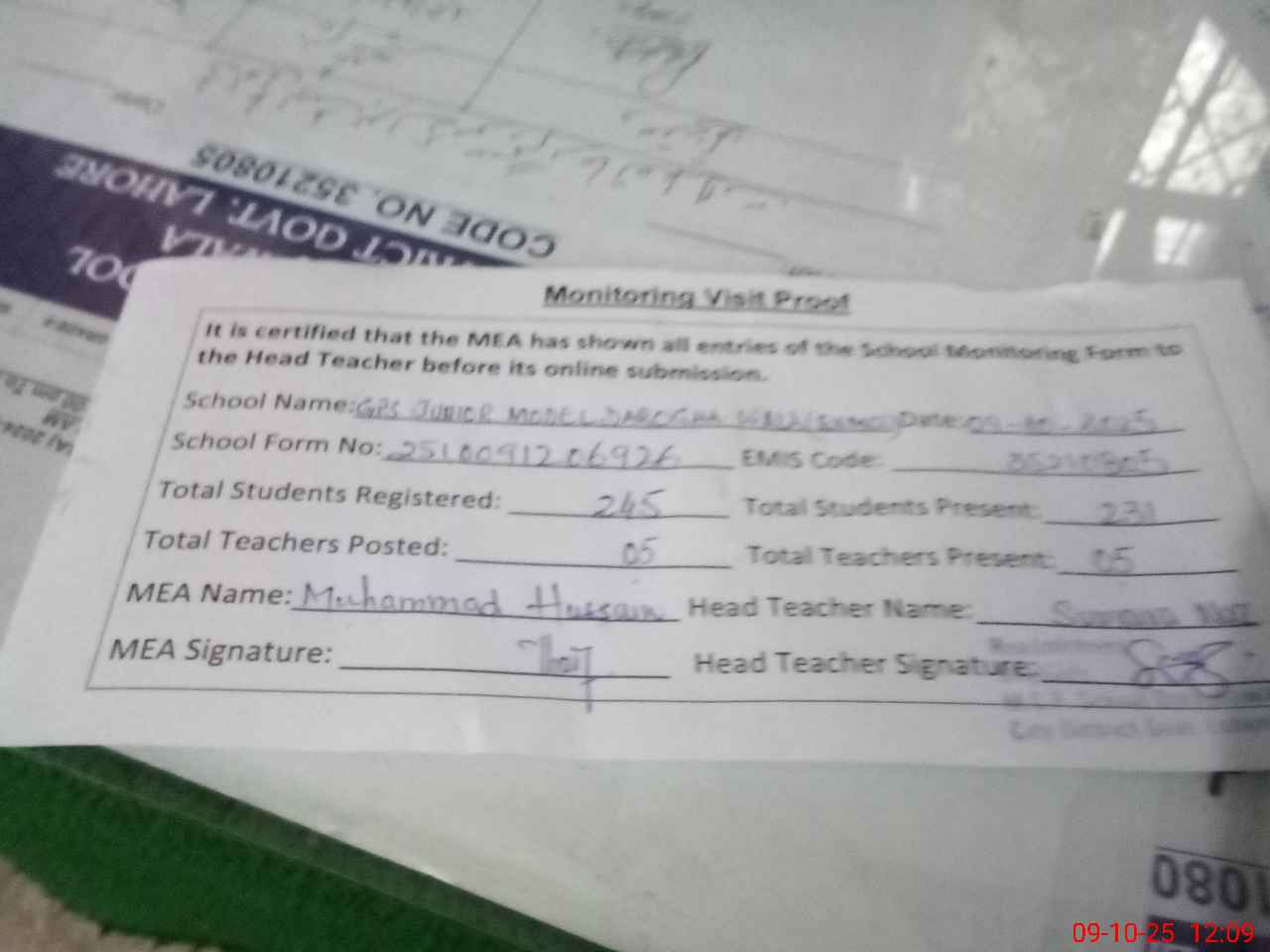 | EMIS Code: 35210805 | Name of School: GPS JUNIOR MODEL DAROGHA WALA (EX-MCL) | |||