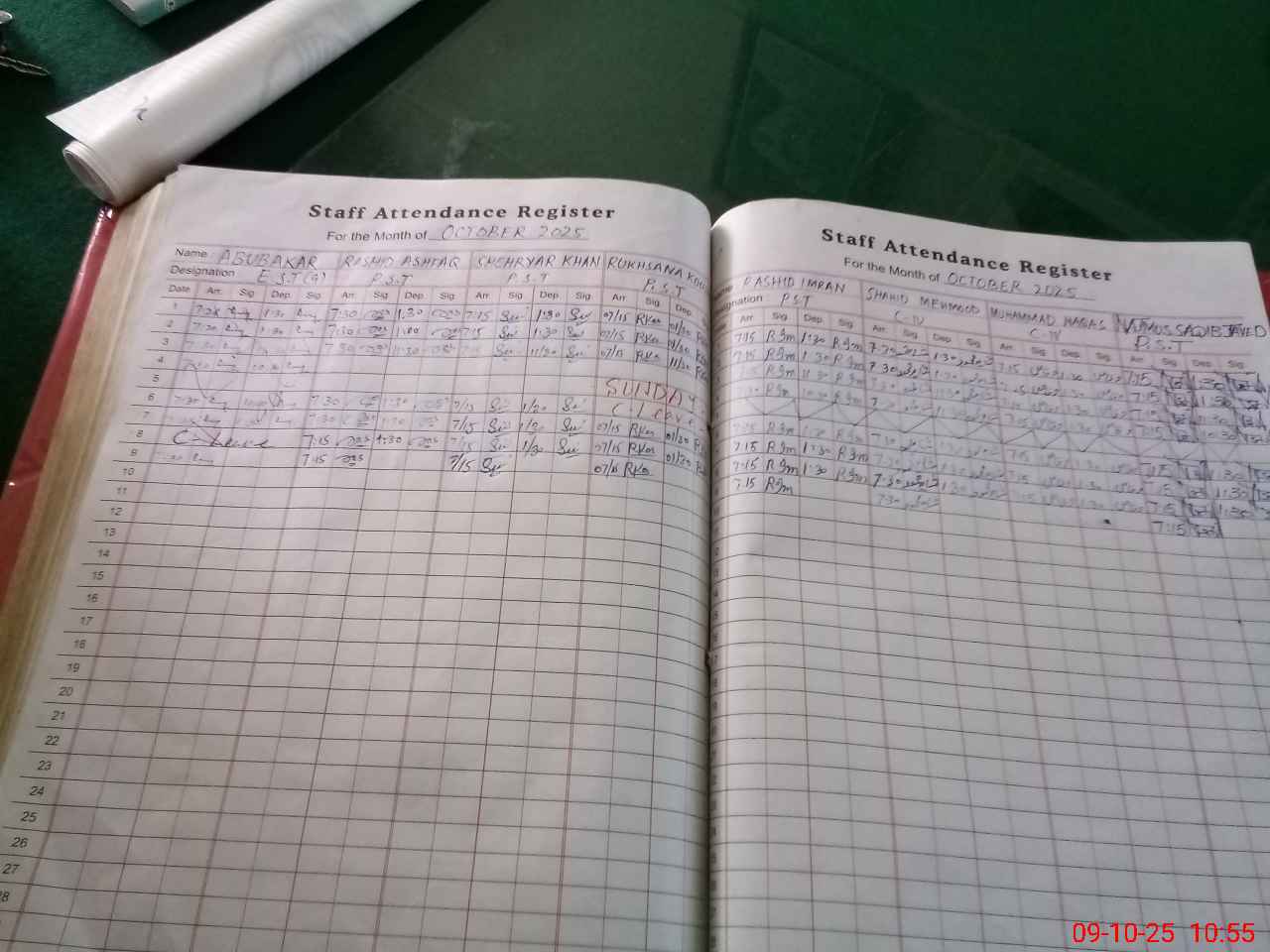 | CNIC | Full Name | Designation | R/C | Absence During Last Calender Month |