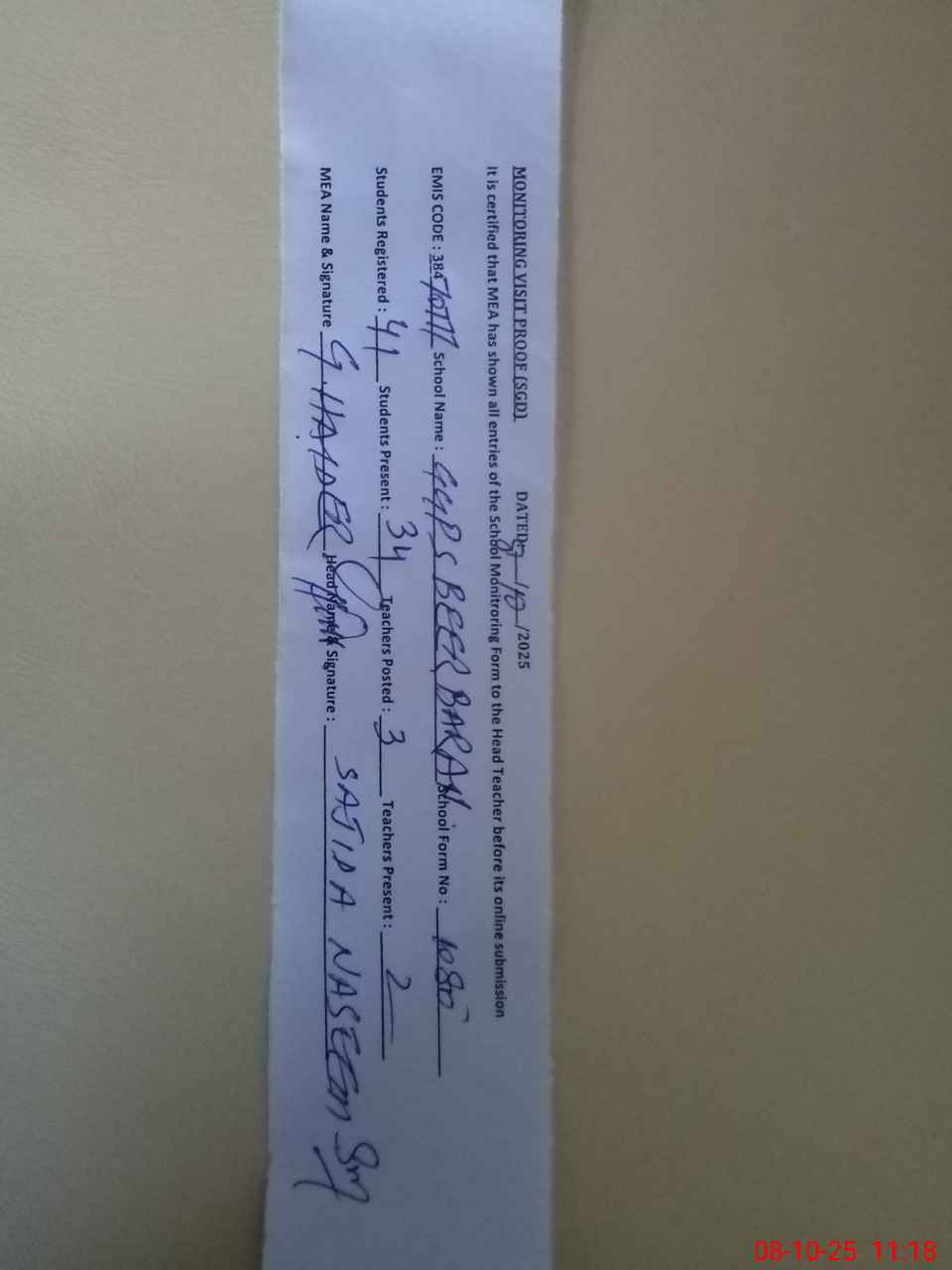 | EMIS Code: 38470777 | Name of School: GGPS BEER BARAN | |||
