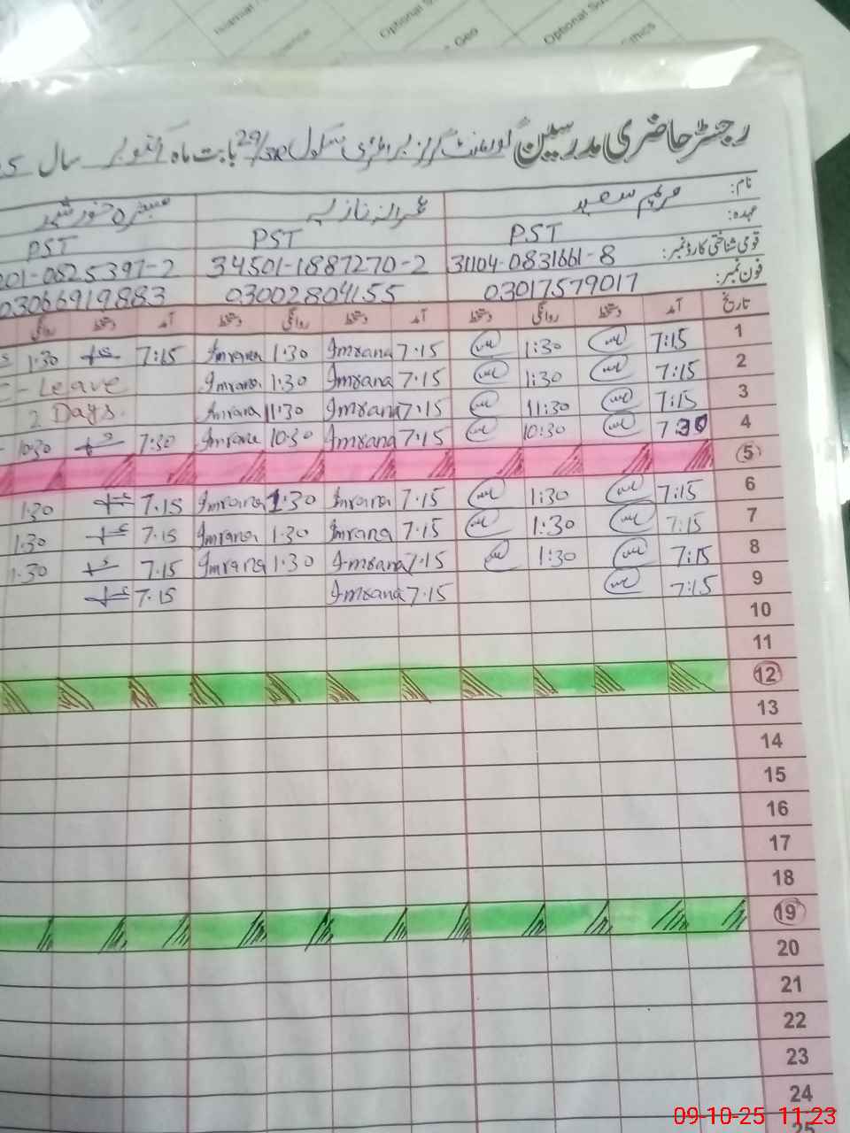 | CNIC | Full Name | Designation | R/C | Absence during last cal. month |