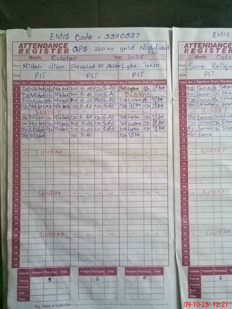 | EMIS Code: 33110037 | Name of School: GPS GRID STATION NISHTA ABAD FSD | |||