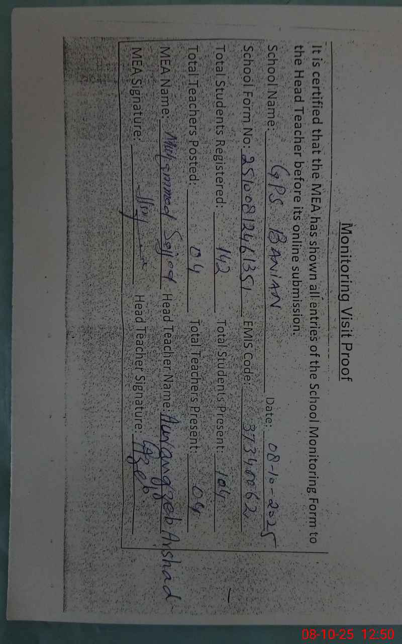 | EMIS Code: 37340062 | Name of School: GPS BANIAN | |||