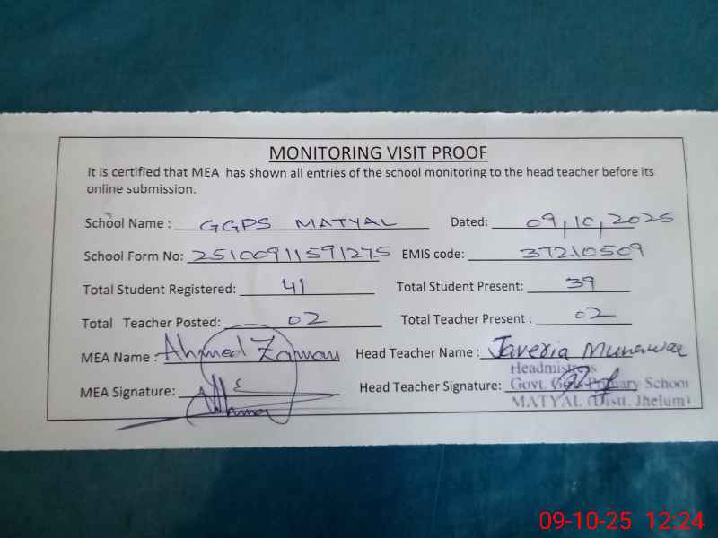 | EMIS Code: 37210509 | Name of School: GGPS MATYAL | |||