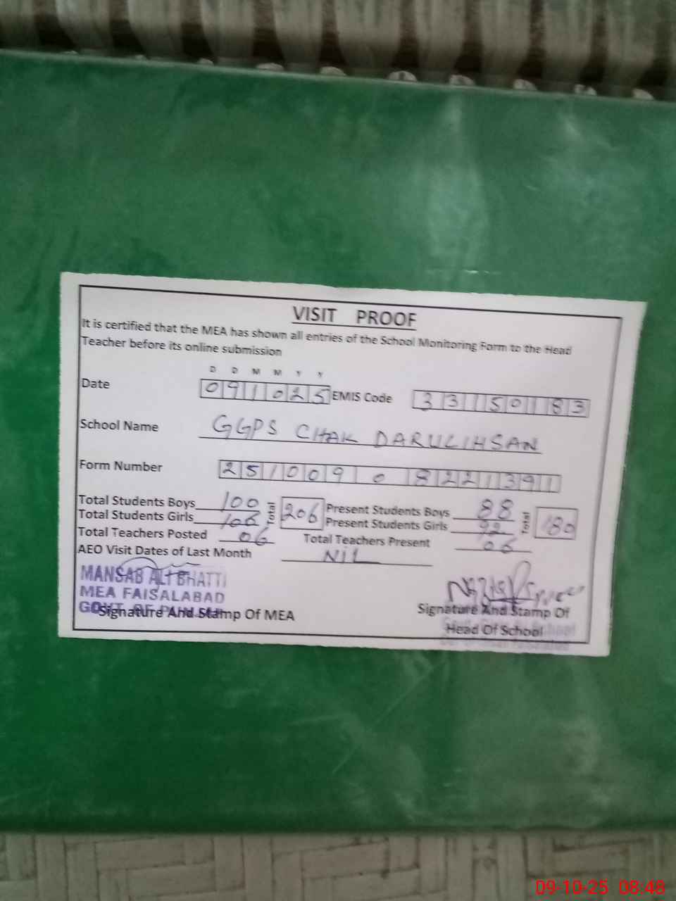 | EMIS Code: 33150183 | Name of School: GGPS CHAK DARULIHSAN | |||