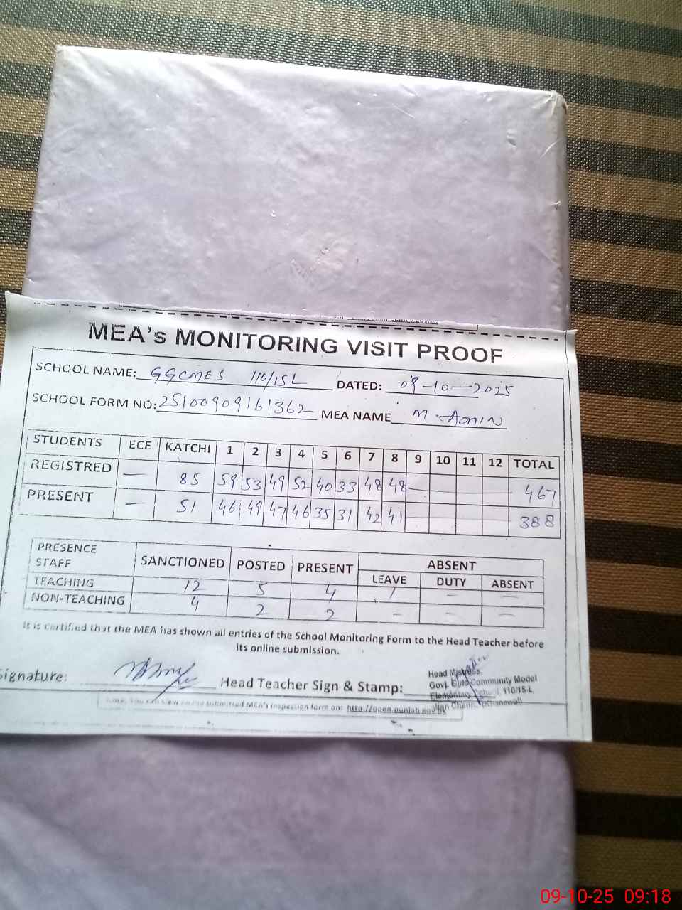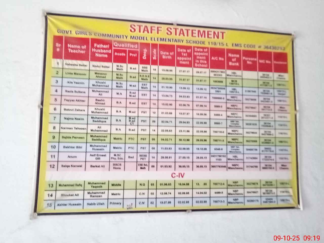 | EMIS Code: 36430293 | Name of School: GGCMES 110/15-L MIAN CHANNU | |||