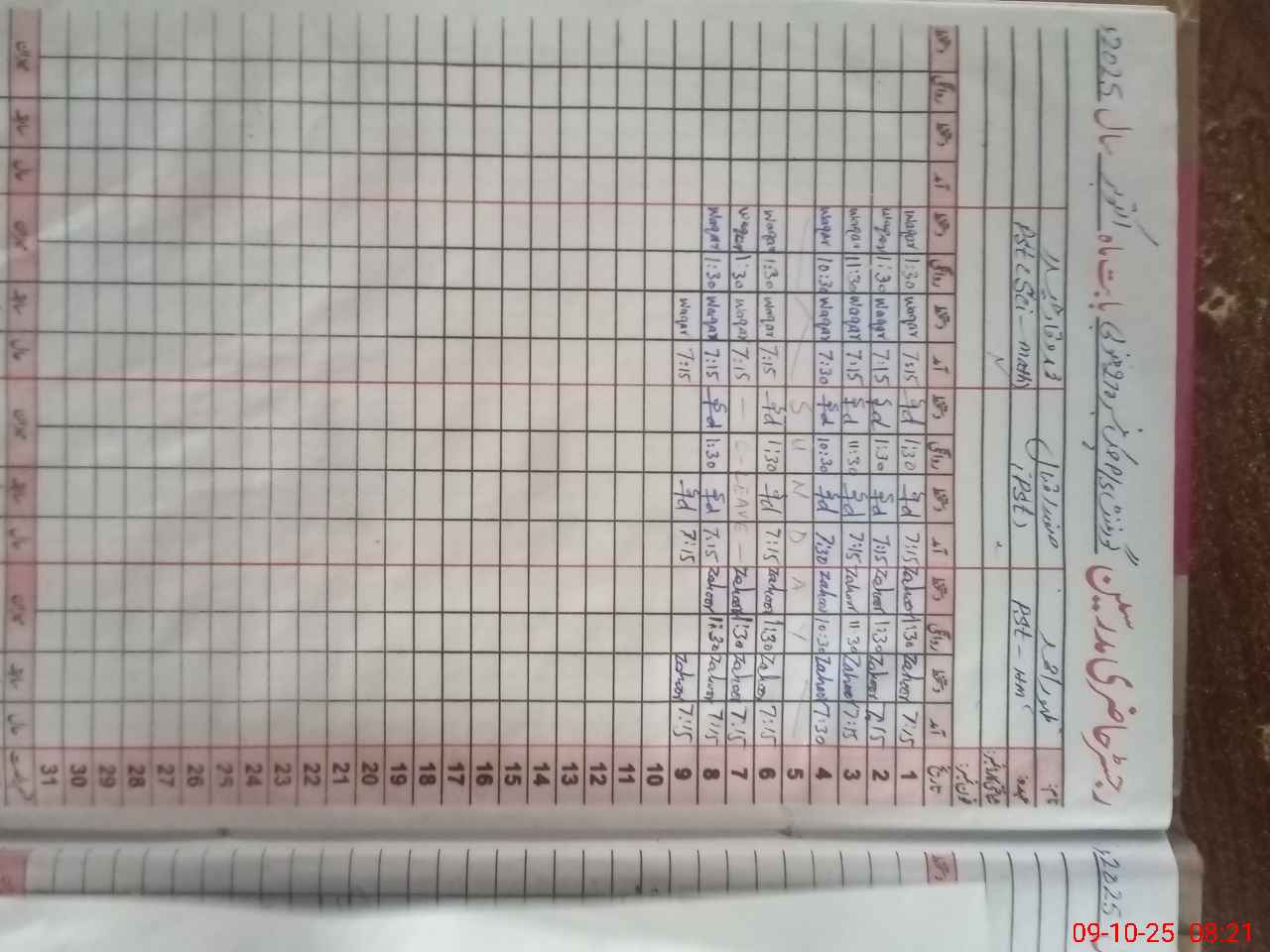 | CNIC | Full Name | Designation | R/C | Absence During Last Calender Month |