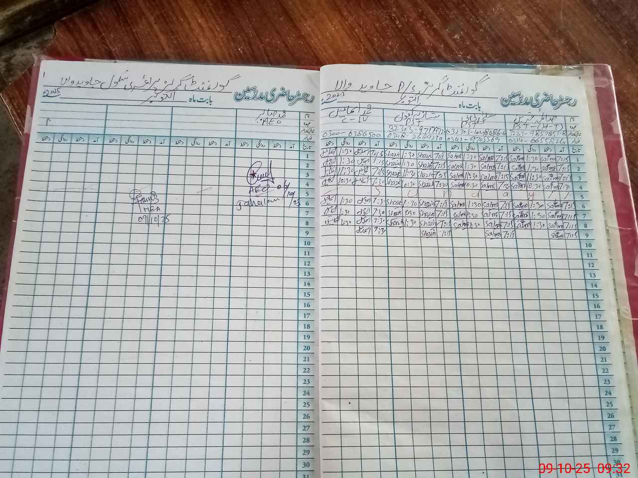 | Attendance Register | Head Teacher | MEA with School | Visit Proof |
