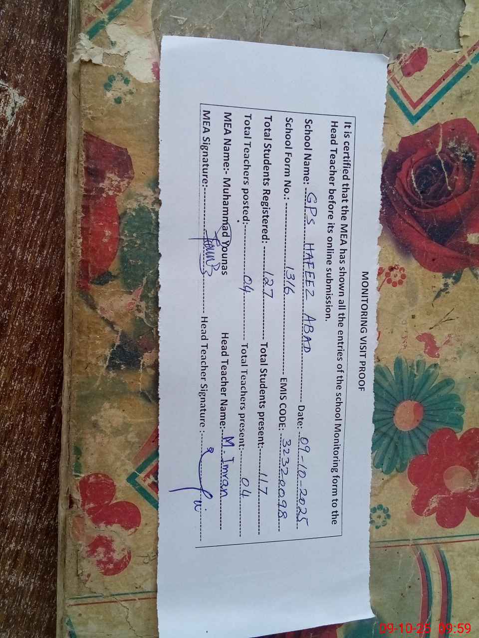 | EMIS Code: 32320098 | Name of School: GPS HAFEEZ ABAD | |||