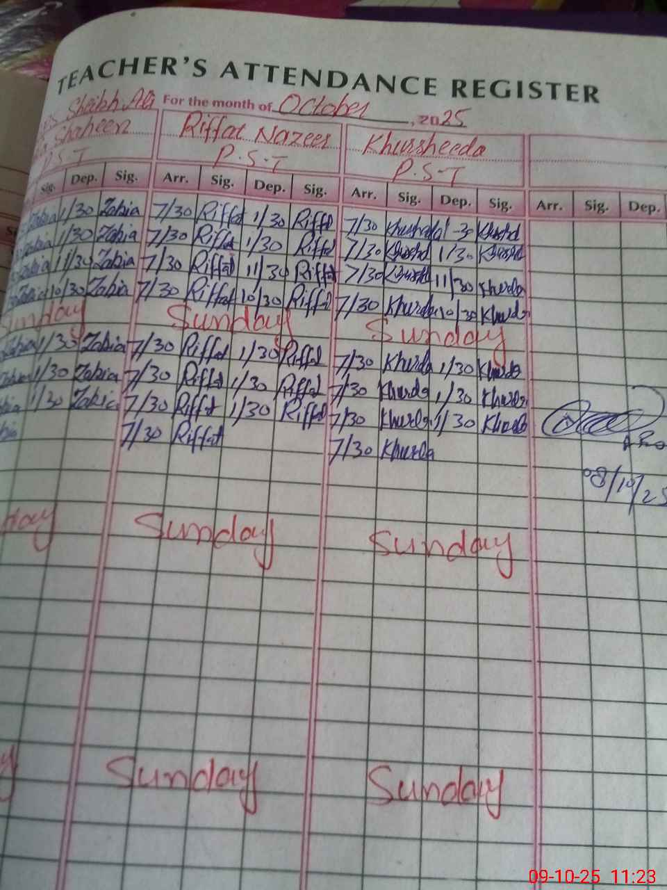 | CNIC | Full Name | Designation | R/C | Absence During Last Calender Month |
