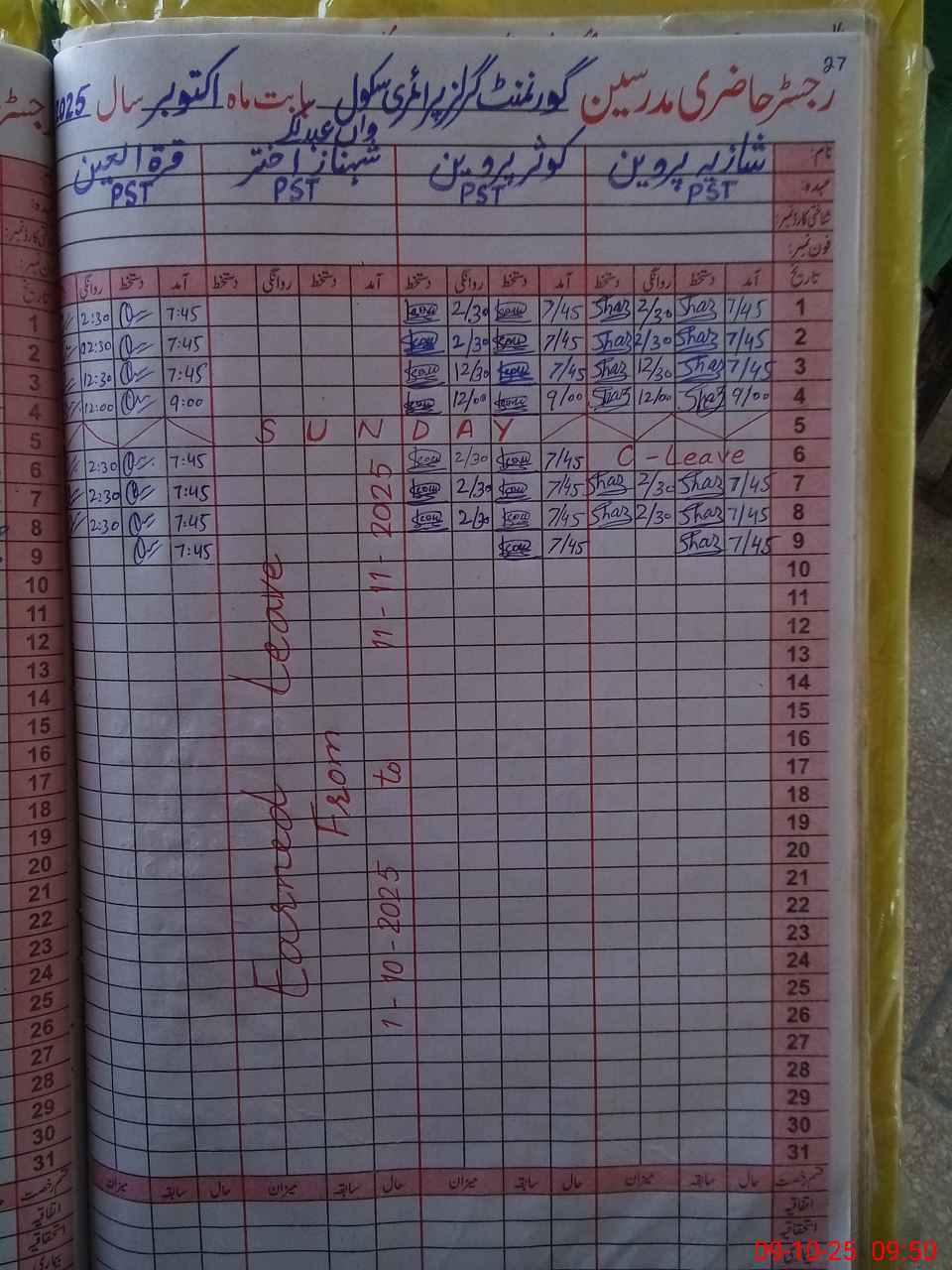 | Name: Sh**** Pe**** Designation: (School Headmaster's/Headmistress's) PST Phone/Cell Number: 03**** |