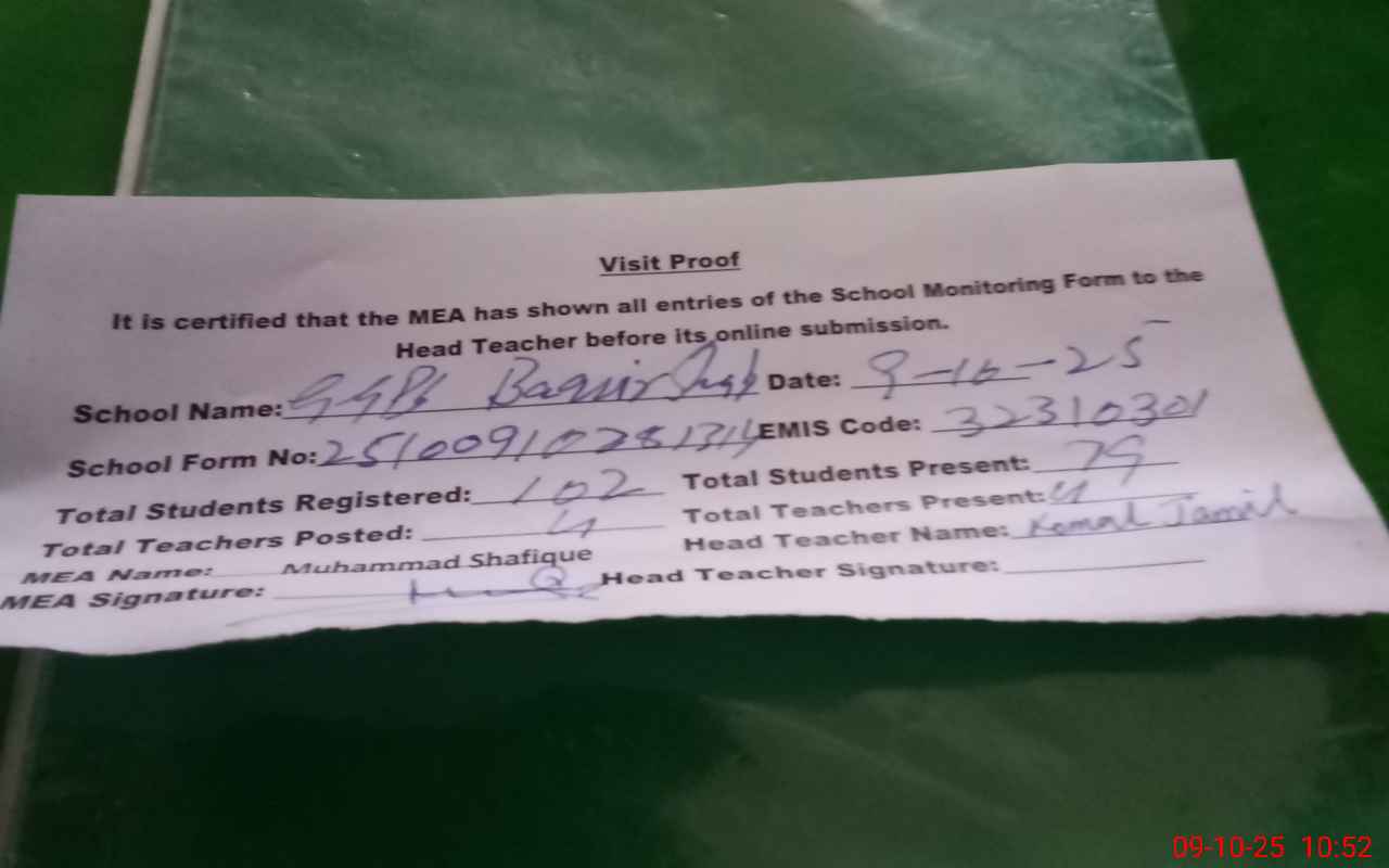 | EMIS Code: 32310301 | Name of School: GGPS BAQAR SHAH | |||