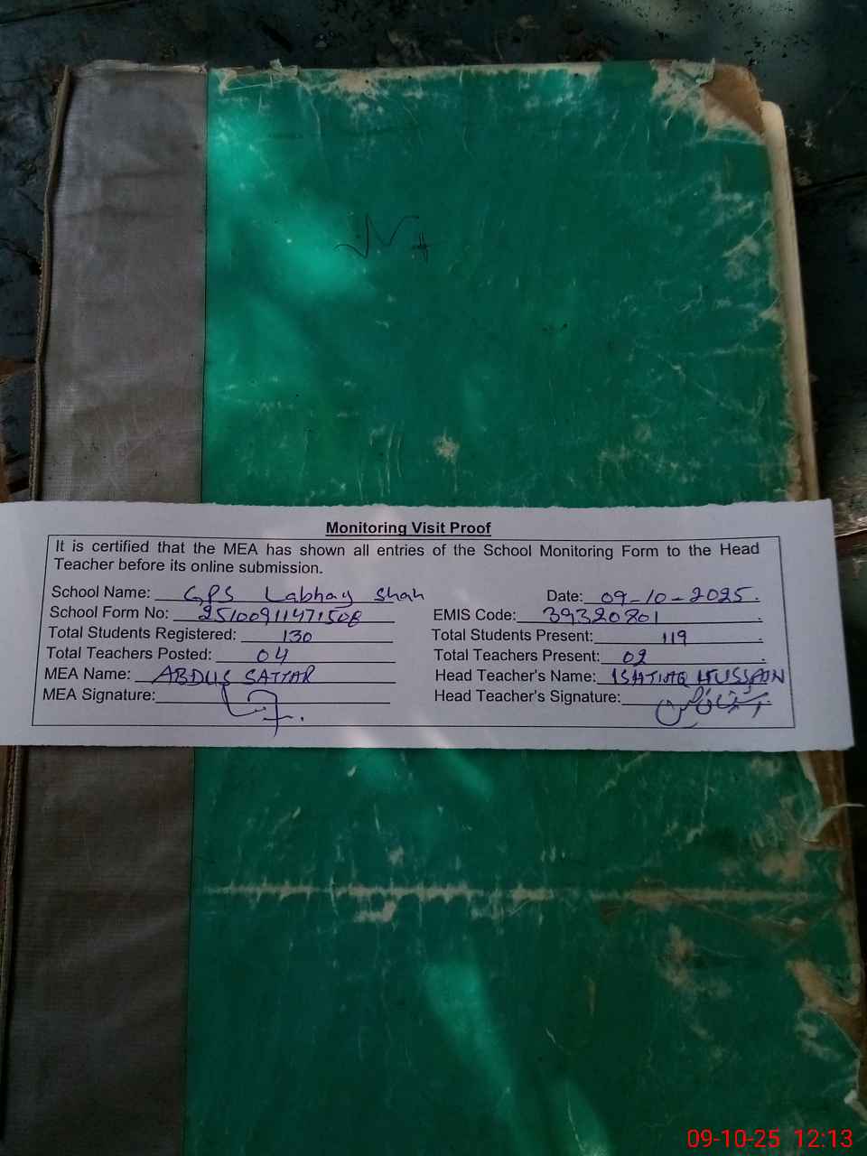 | EMIS Code: 39320801 | Name of School: GPS LABHAY SHAH | |||