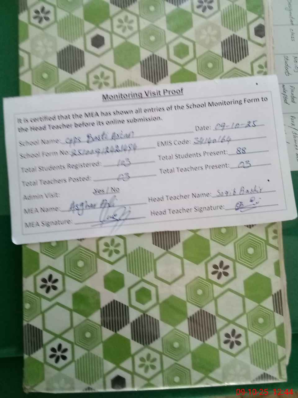 | Certified that this School was Inspected by the Undersigned MEA/DMO Today and the Information Stated Above is as Per Record. | |||||