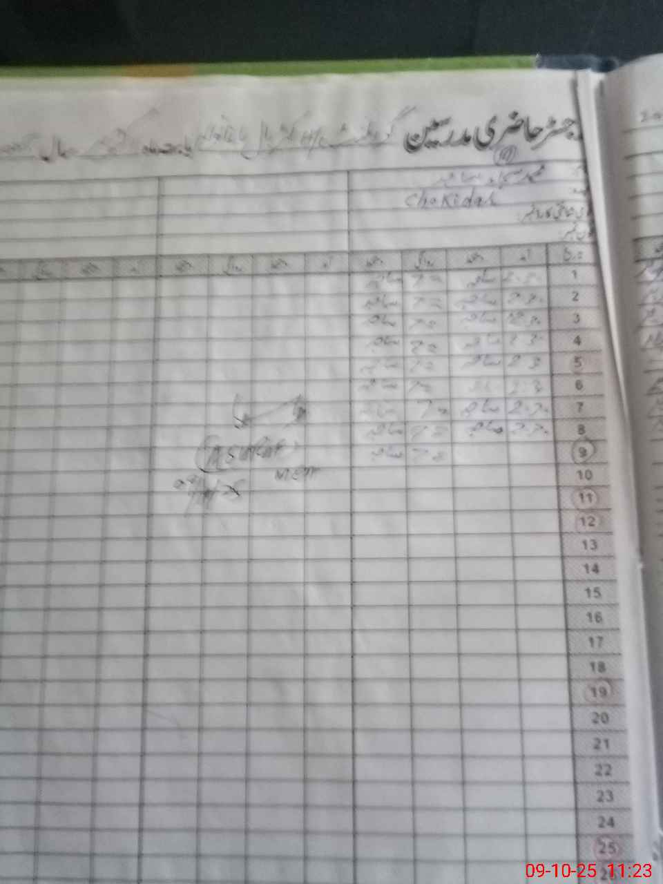 | CNIC | Full Name | Designation | R/C | Absence during last cal. month |