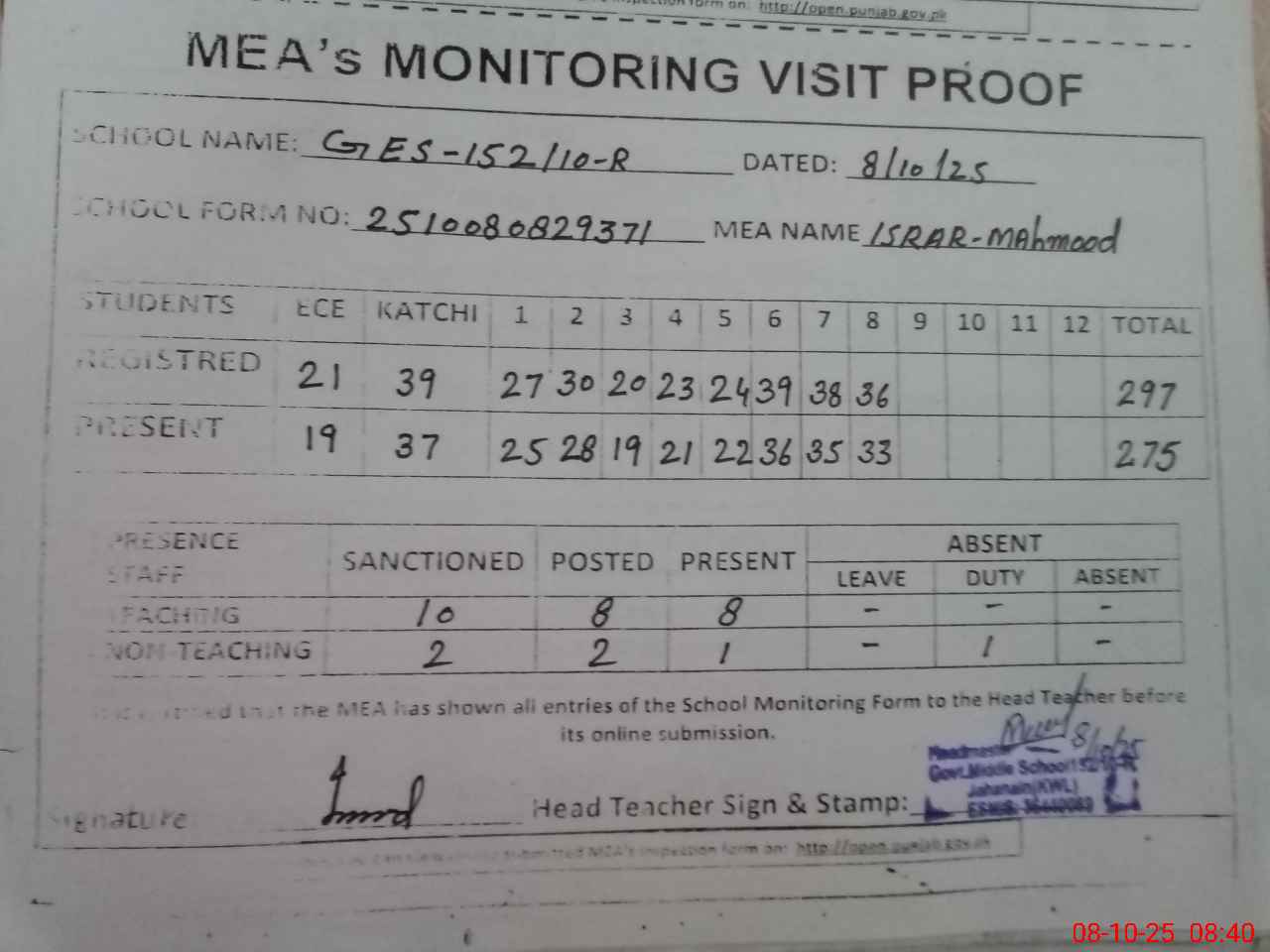 | EMIS Code: 36440089 | Name of School: GES 152/10-R, JAHANIAN | |||