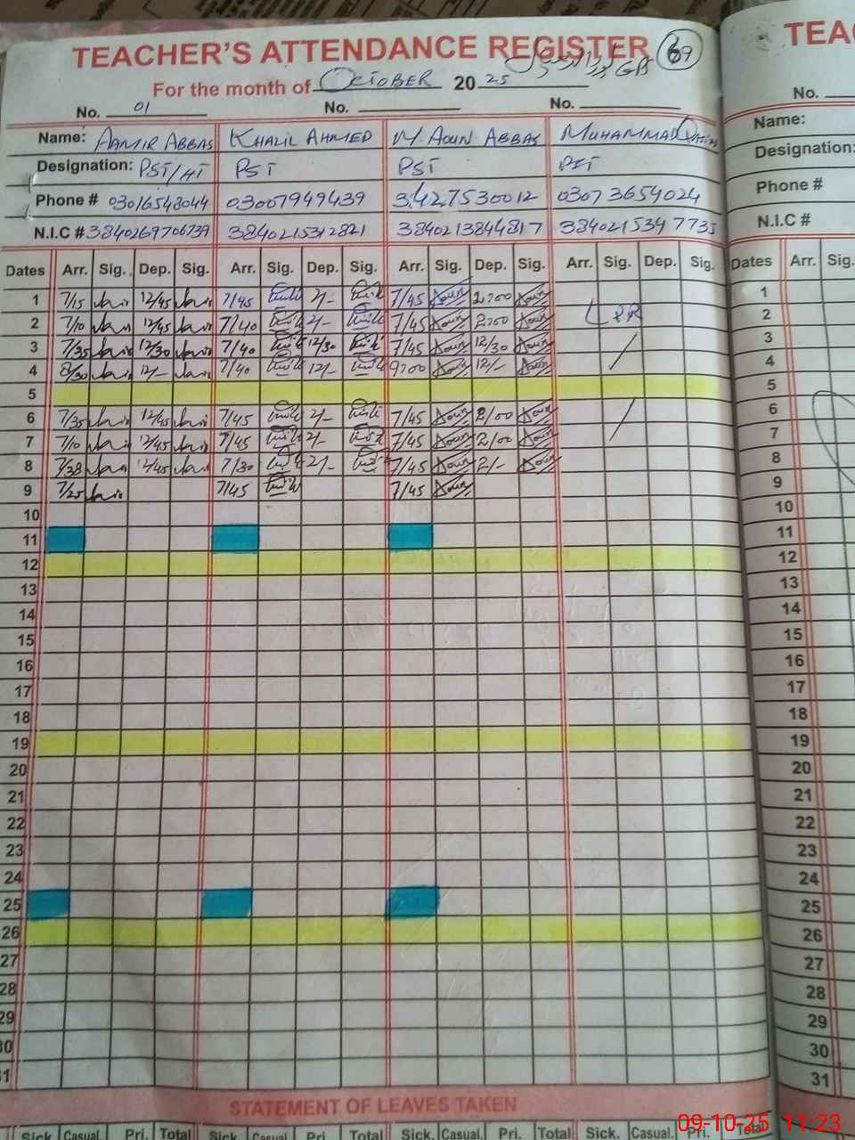 | Name: AA**** AB**** Designation: (School Headmaster's/Headmistress's) PST Phone/Cell Number: 03**** |