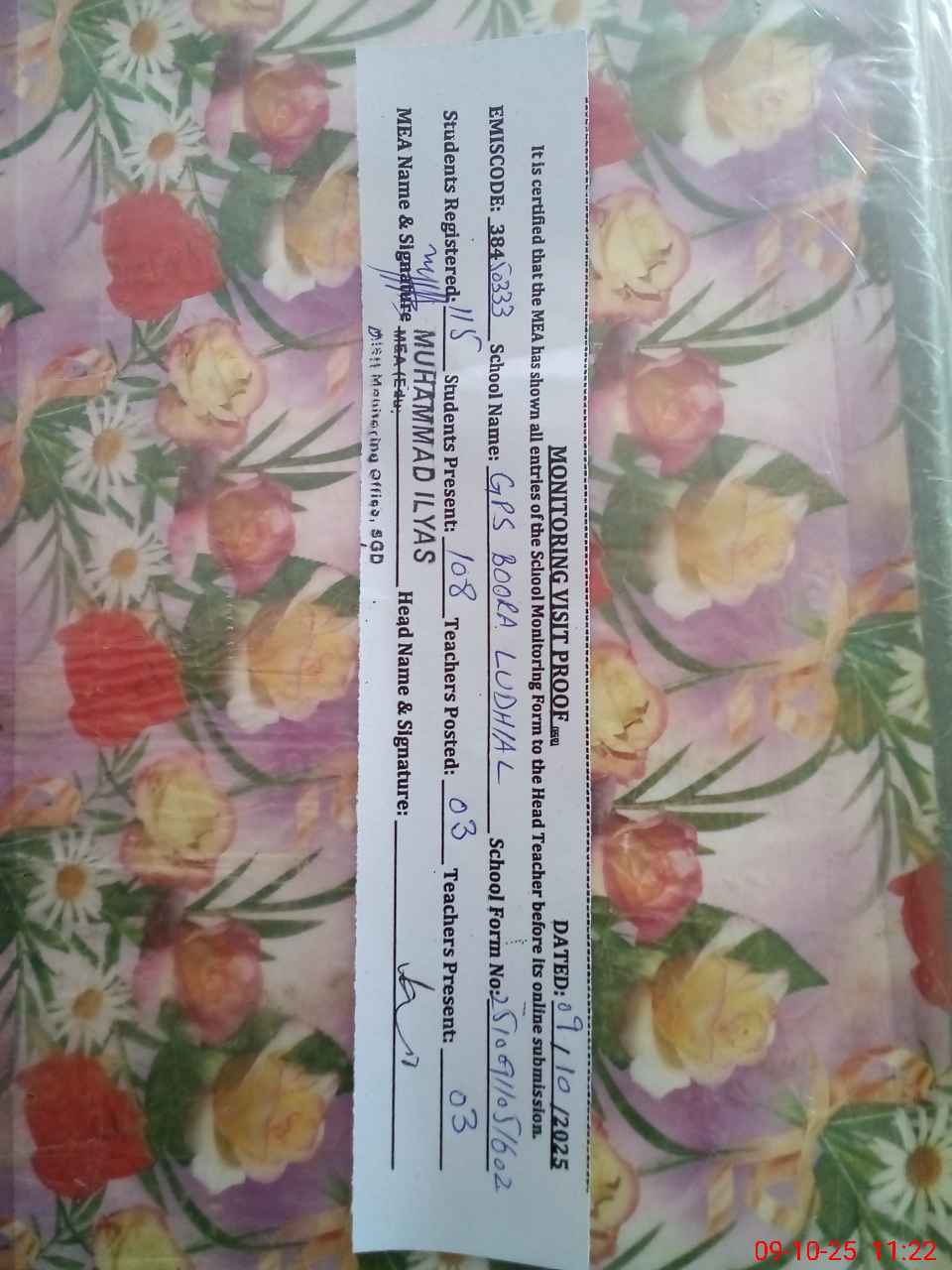 | EMIS Code: 38450333 | Name of School: GPS BORA LUDHIAL | |||