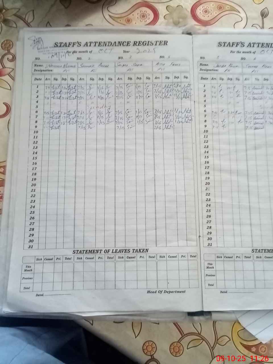 | Leave | Duty | Absent | Maternity | Medical | Ex- Pak |