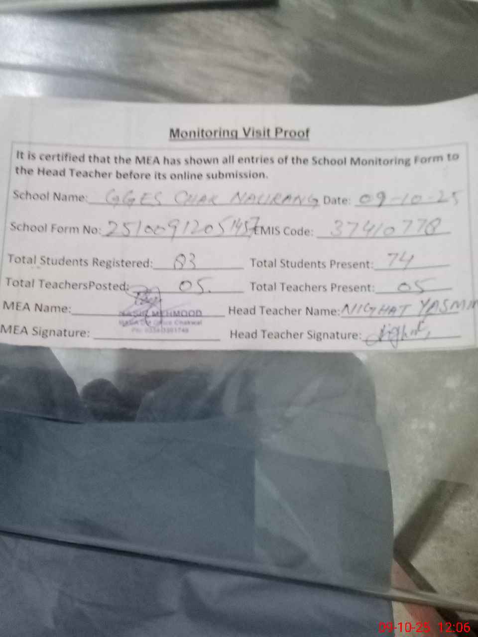 | Certified that this School was Inspected by the Undersigned MEA/DMO Today and the Information Stated Above is as Per Record. | |||||