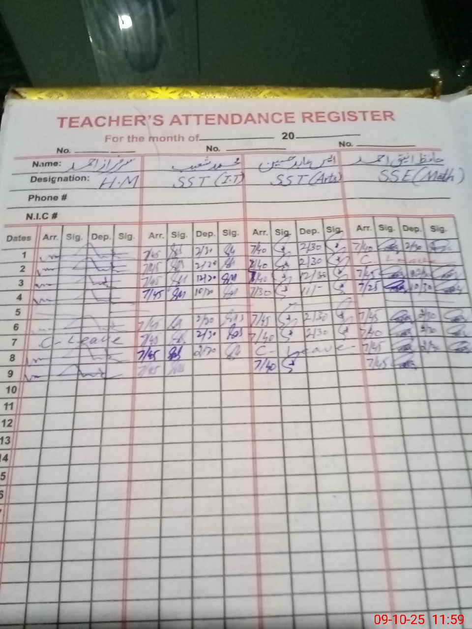 | Name: Mu**** Sh**** Designation: (School Headmaster's/Headmistress's) SST I T Phone/Cell Number: 03**** |
