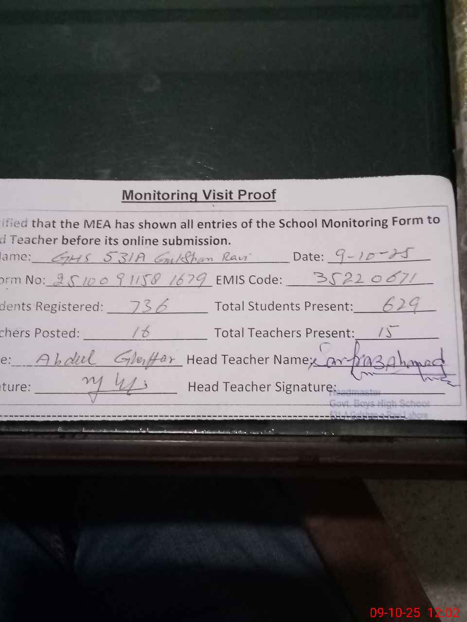 | EMIS Code: 35220671 | Name of School: GHS 531-A GULSHAN RAVI | |||