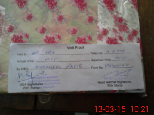 | Attendance Register | Head Teacher | MEA with School | Visit Proof |