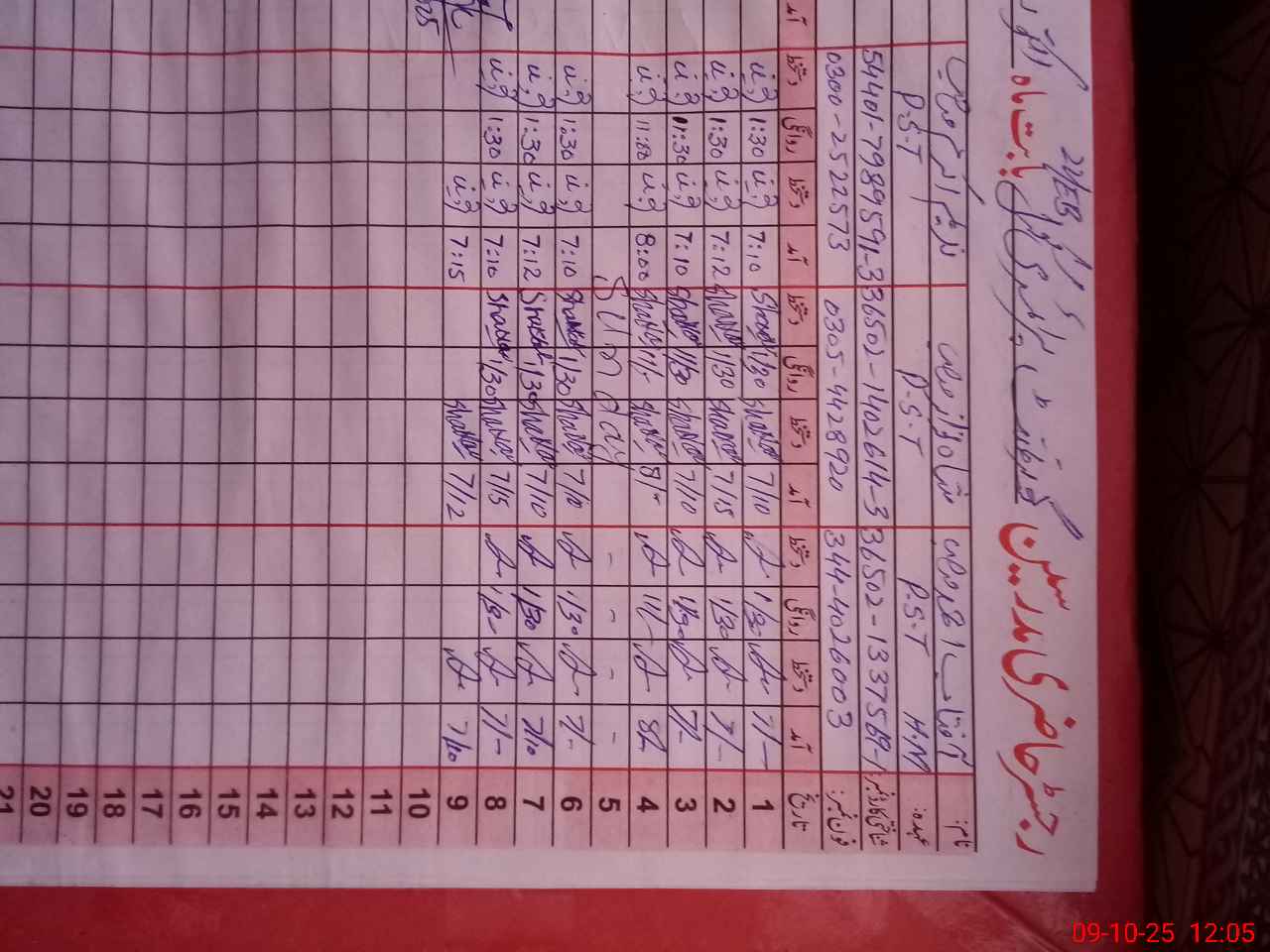 | CNIC | Full Name | Designation | R/C | Absence during last cal. month |