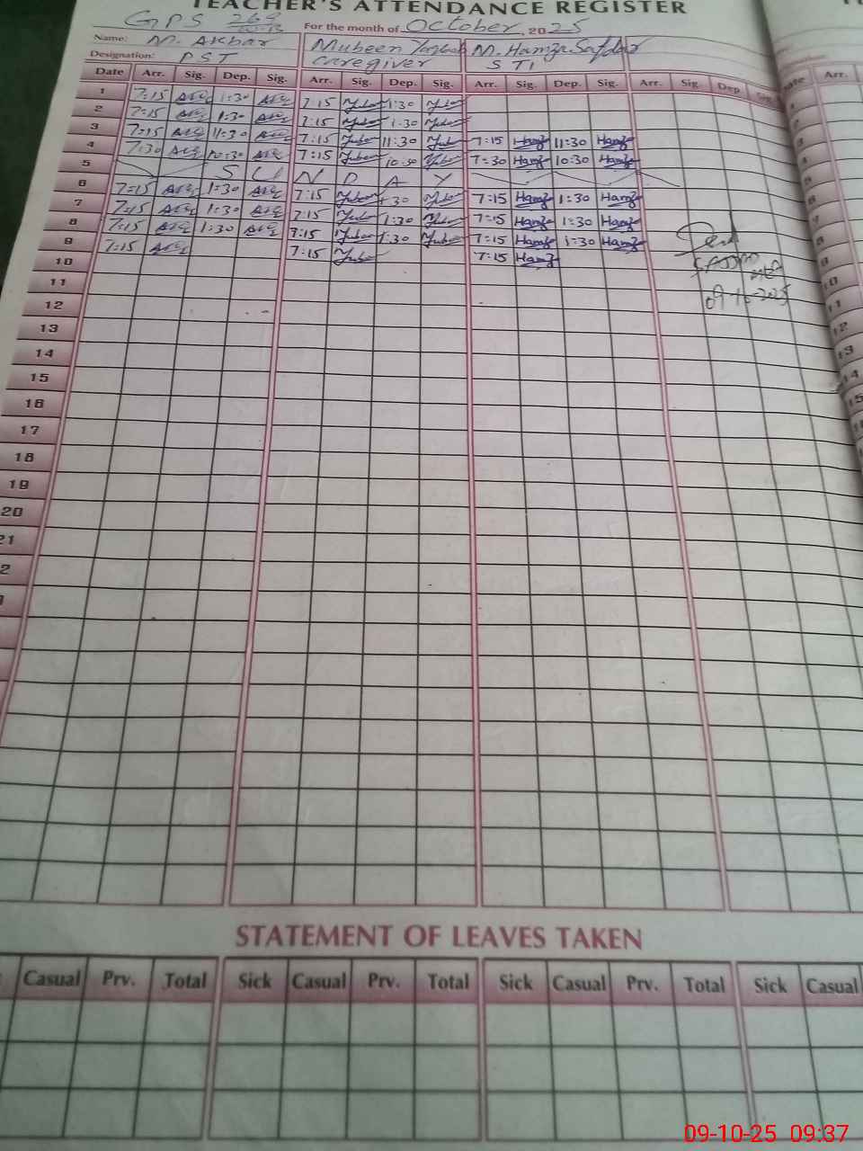 | EMIS Code: 36630092 | Name of School: GPS CHAK NO. 269/WB | |||