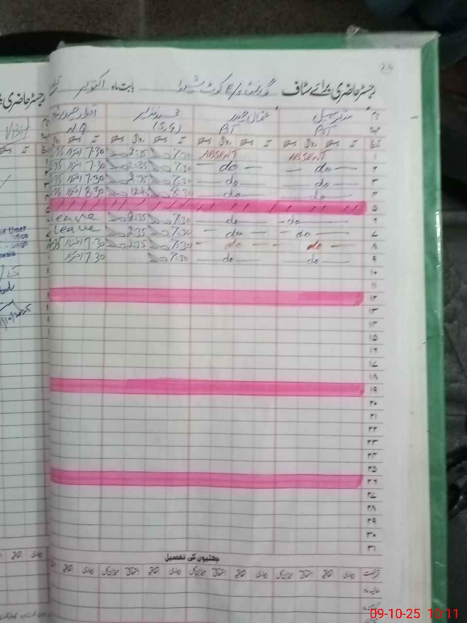 | CNIC | Full Name | Designation | R/C | Absence During Last Calender Month |