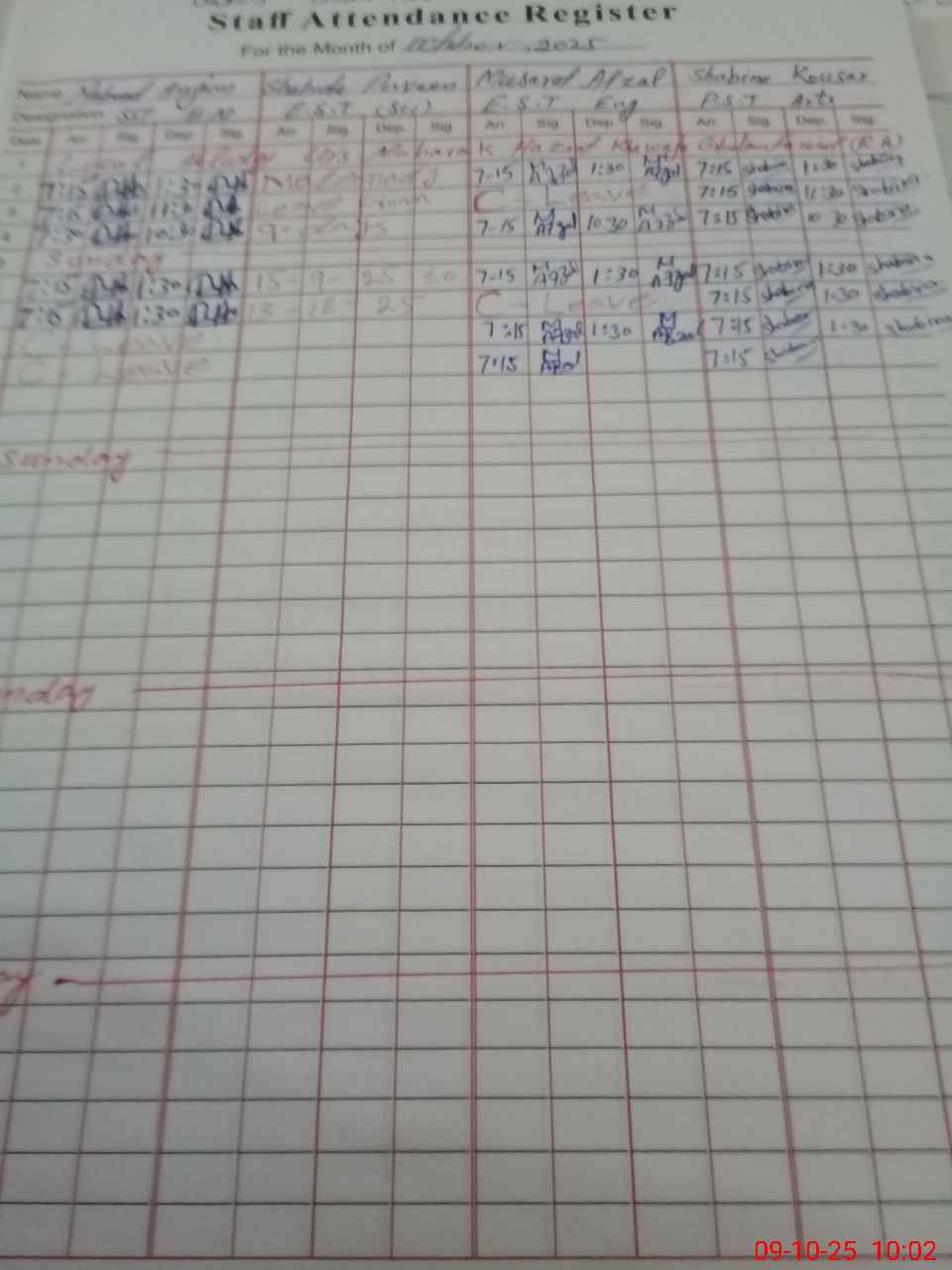 | CNIC | Full Name | Designation | R/C | Absence During Last Calender Month |