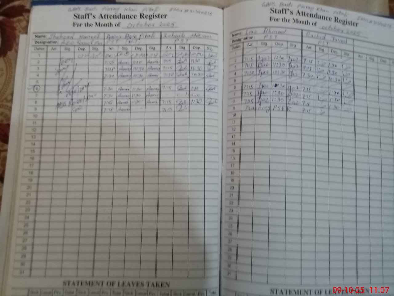 | CNIC | Full Name | Designation | R/C | Absence During Last Calender Month |