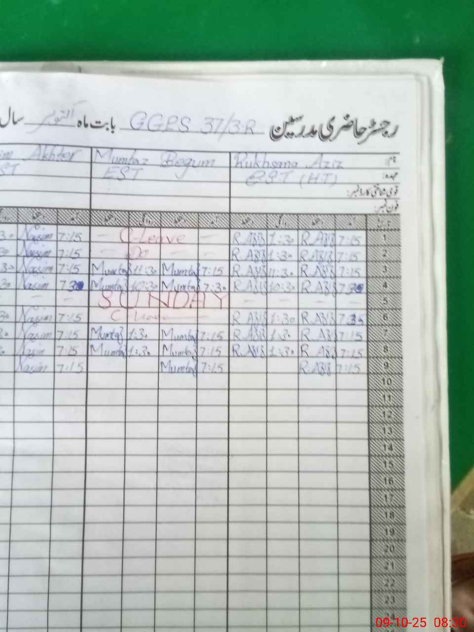 | CNIC | Full Name | Designation | R/C | Absence During Last Calender Month |