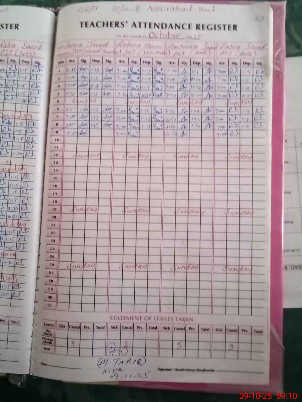 | Monitoring Date: 09-10-2025 | Start Time: 09-10-2025 09:09 AM | End Time: 09-10-2025 09:34 AM | Name of MEA: MU**** TA**** | |