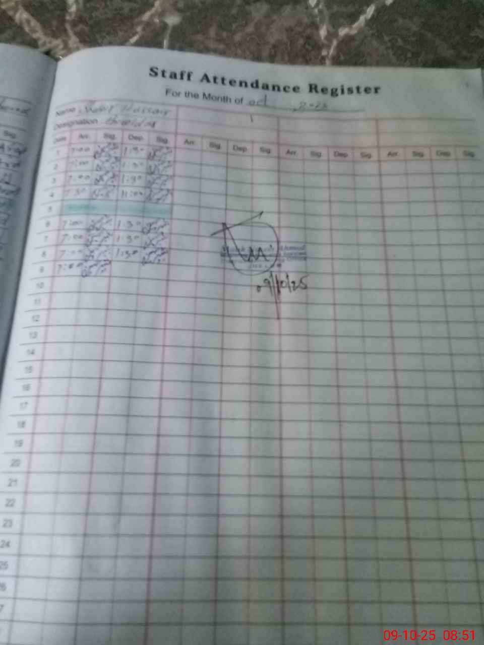 | Monitoring Date: 09-10-2025 | Start Time: 09-10-2025 08:22 AM | End Time: 09-10-2025 08:53 AM | Name of MEA: Na**** Ah**** | |