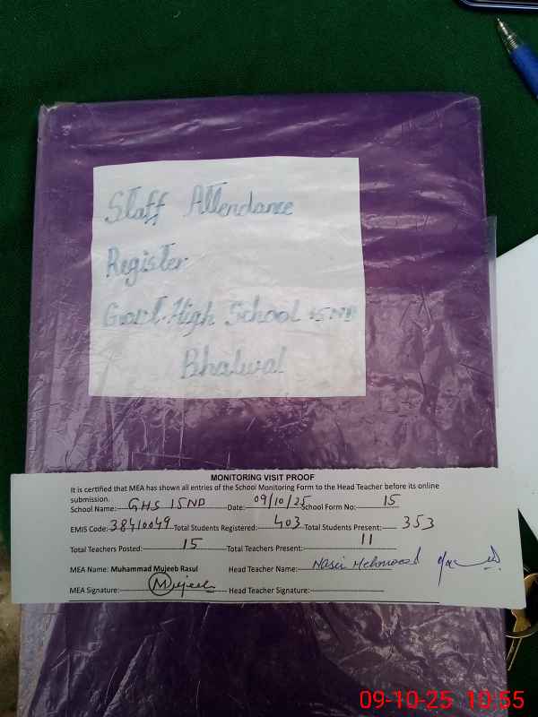 | EMIS Code: 38410049 | Name of School: GHS CHAK NO.15 NB | |||