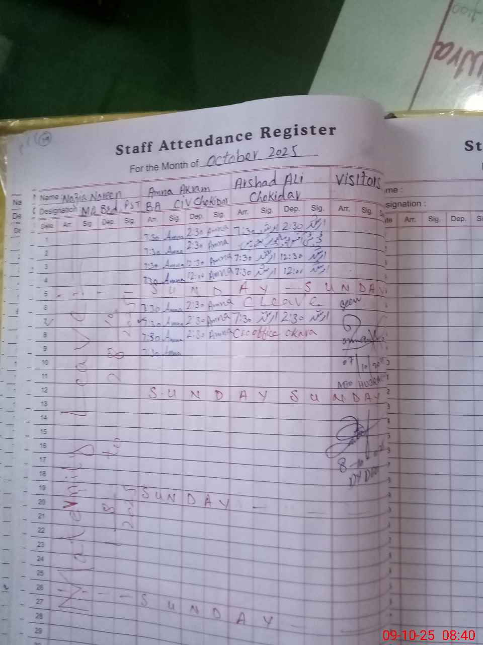 | Sr.No. | Visit Date | Designation | ||