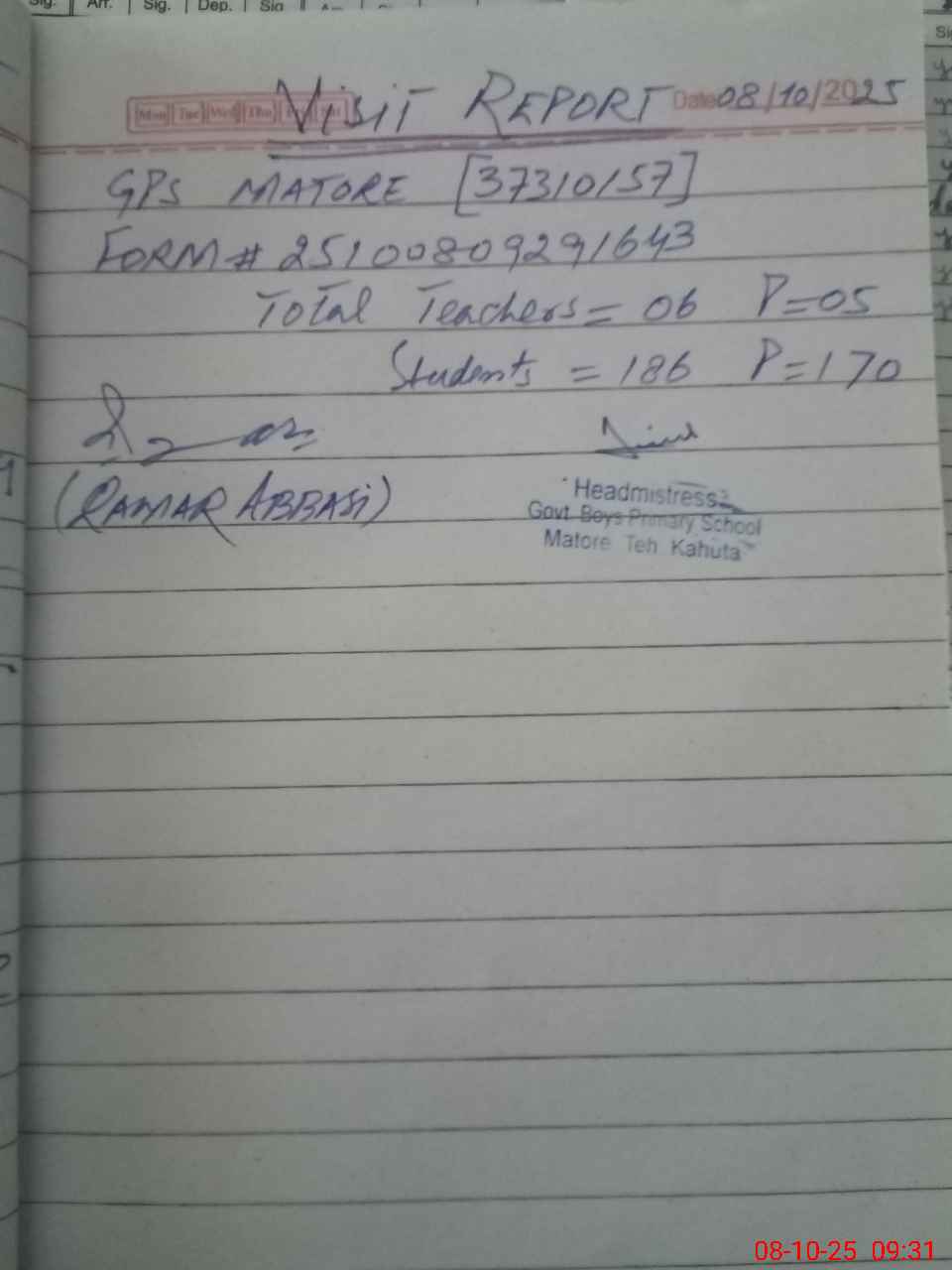 | Certified that this School was Inspected by the Undersigned MEA/DMO Today and the Information Stated Above is as Per Record. | |||||