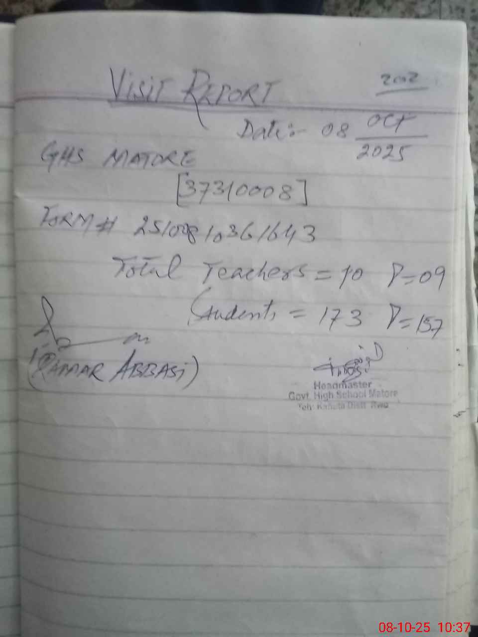 | Attendance Register | Head Teacher | MEA with School | Visit Proof |