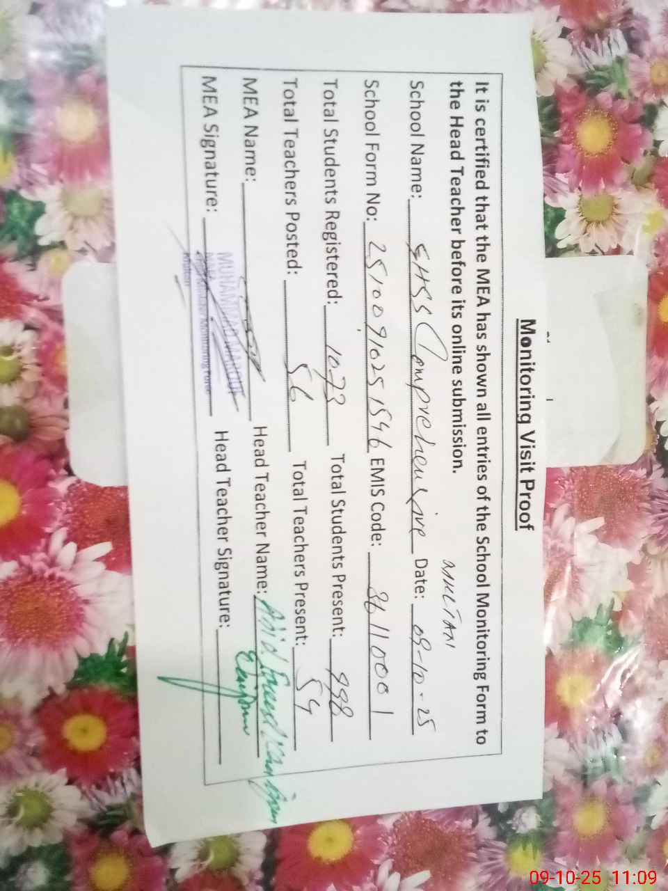 | EMIS Code: 36110001 | Name of School: GHSS COMPREHENSIVE BOSAN ROAD MULTAN | |||