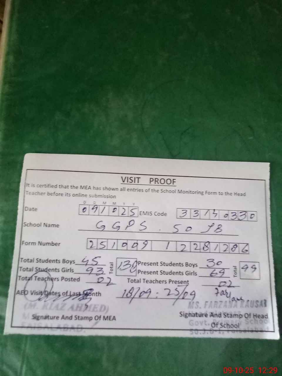 | EMIS Code: 33140330 | Name of School: GGPS CHAK 50 JB | |||