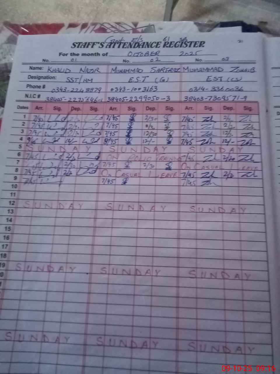 | Name: KH**** NA**** Designation: (School Headmaster's/Headmistress's) S.S.T.(G) Phone/Cell Number: 03**** |