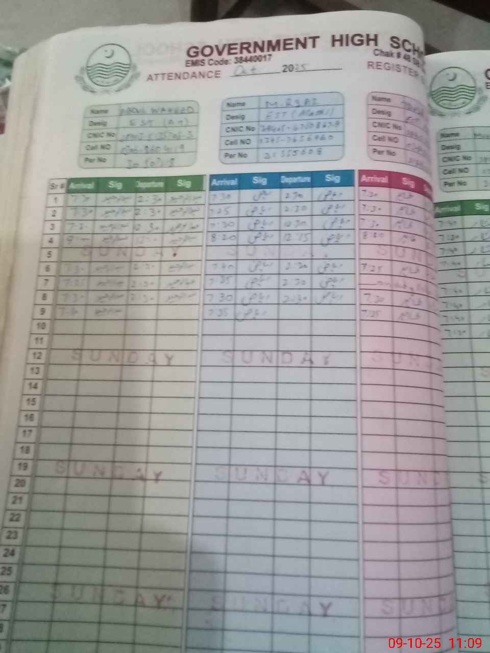| CNIC | Full Name | Designation | R/C | Absence during last cal. month |