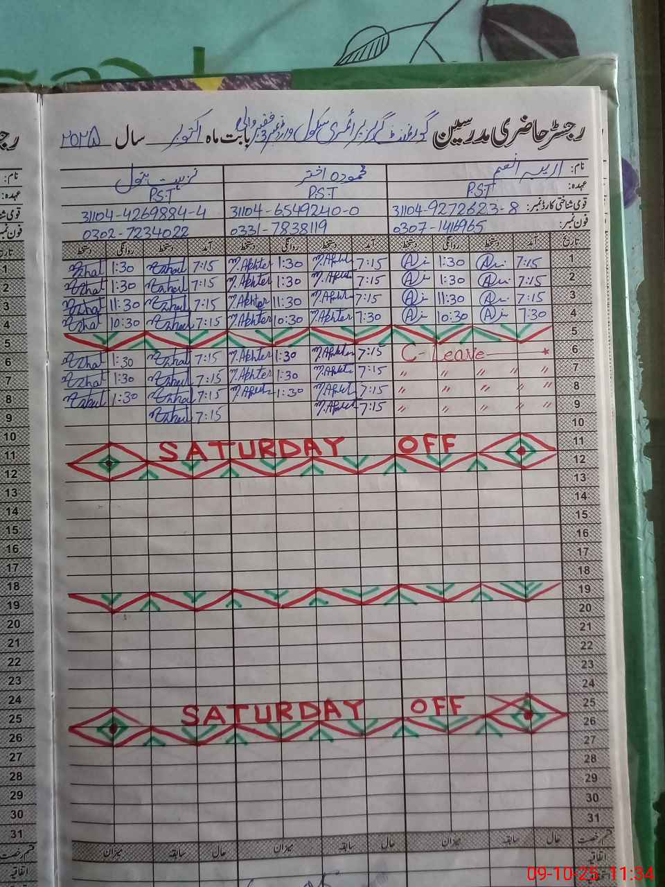 | CNIC | Full Name | Designation | R/C | Absence During Last Calender Month |