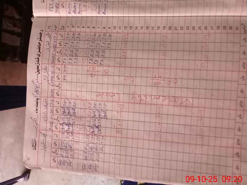 | CNIC | Full Name | Designation | R/C | Absence during last cal. month |