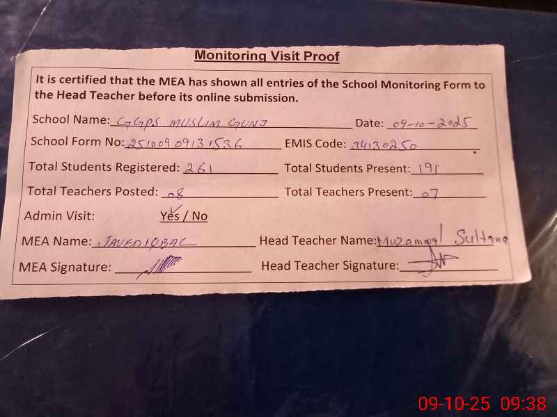 | EMIS Code: 34130250 | Name of School: GGPS MUSLIM GUNJ | |||