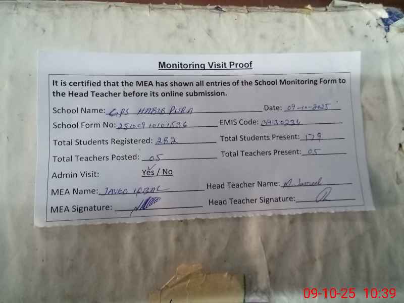 | EMIS Code: 34130234 | Name of School: GPS HABIB PURA | |||