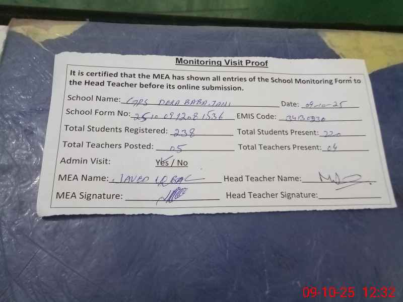 | EMIS Code: 34130230 | Name of School: GPS DERA BABA JANI | |||