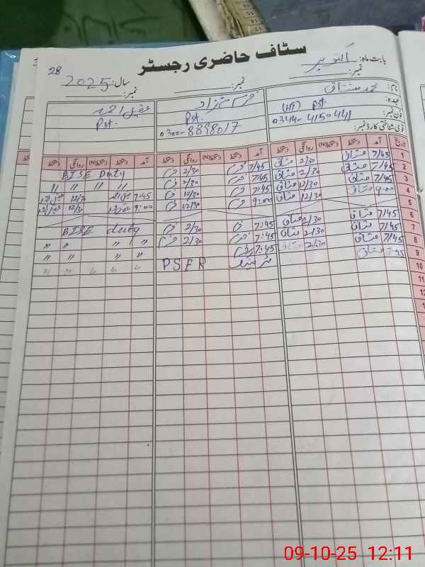 | Name: MU**** MU**** Designation: (School Headmaster's/Headmistress's) PST/PTC/JV Phone/Cell Number: 03**** |