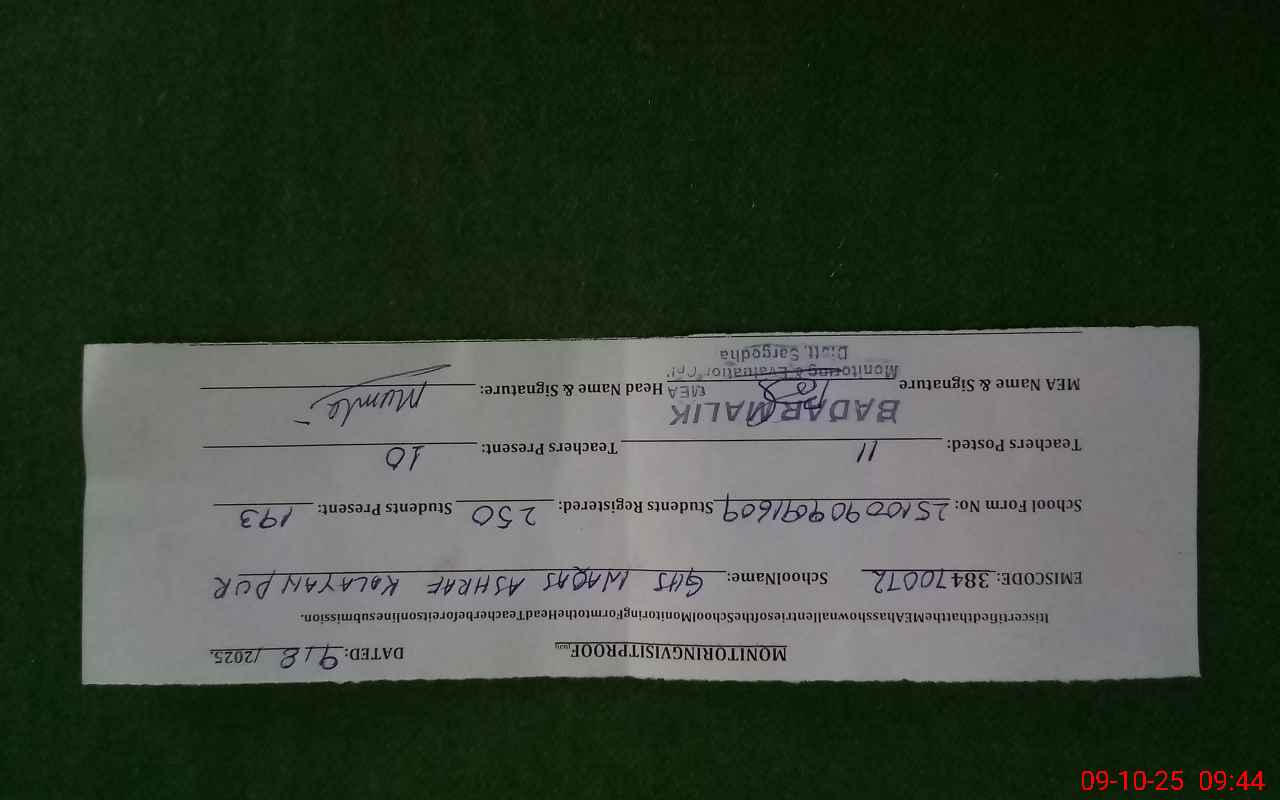 | Monitoring Date: 09-10-2025 | Start Time: 09-10-2025 09:09 AM | End Time: 09-10-2025 09:45 AM | Name of MEA: BA**** MU**** | |